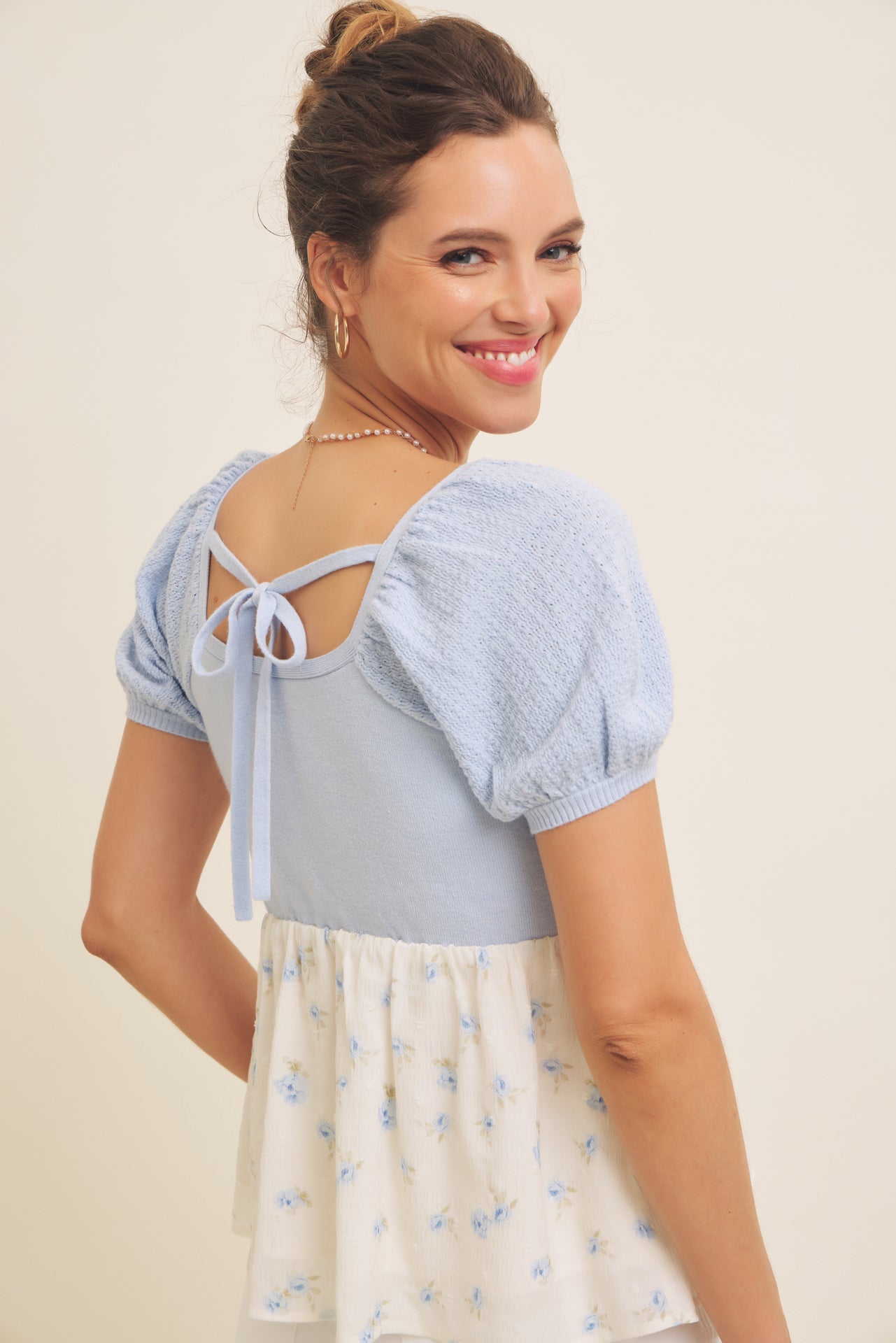 Embrace effortless elegance with this charming baby doll top, featuring delicate romantic ruffles and a flattering button-down silhouette. The soft, sweater-knit fabric drapes beautifully while the floral-inspired design adds a touch of feminine sophistication. Perfect for layering or wearing solo, this versatile piece transitions seamlessly from casual days to evening outings. A wardrobe essential that combines comfort with timeless style.
