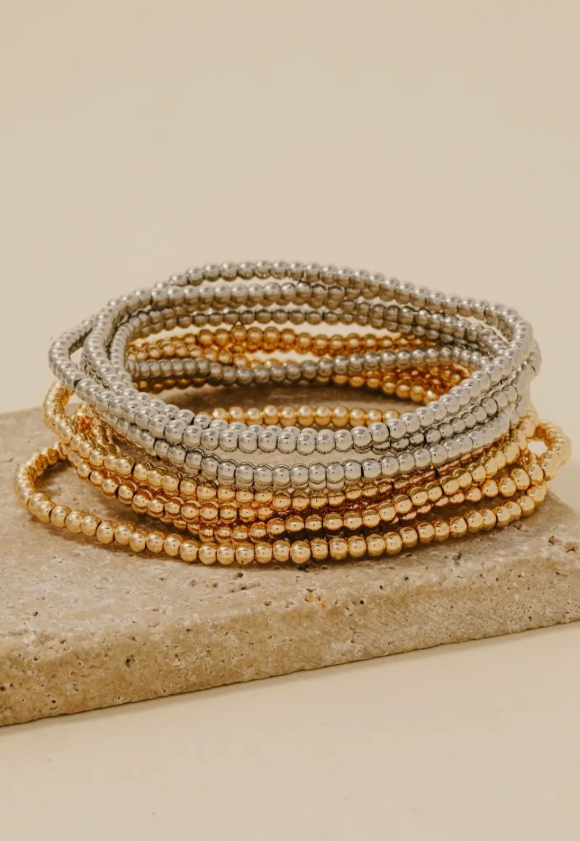 Expertly crafted with mixed metal meaning beads, this set of 10 individual bracelets is perfect for adding a touch of style and meaning to any outfit. Each bracelet features unique beads that represent different qualities, making it a versatile and meaningful accessory for any occasion.